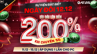 Từ ngày 11.12 - 15.12, Sự kiện khuyến mãi ngày đôi 12.12 sẽ chính thức xuất hiện với ưu đãi lên đến 200% khi nạp tích lũy FC. Hãy cùng khám phá chi tiết ngay thôi nào!