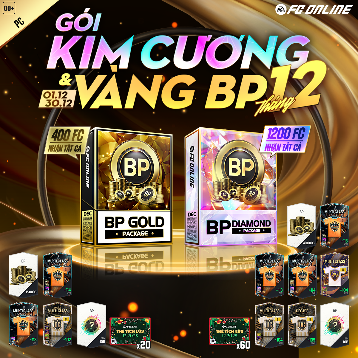 Với 1200 FC, Gói kim cương BP sẽ đem tới ngay cho các HLV 40,000 tỷ BP cùng 20 gói BP may mắn khác nhau để giúp các HLV săn đón ngay các con hàng ưng ý cho riêng mình,