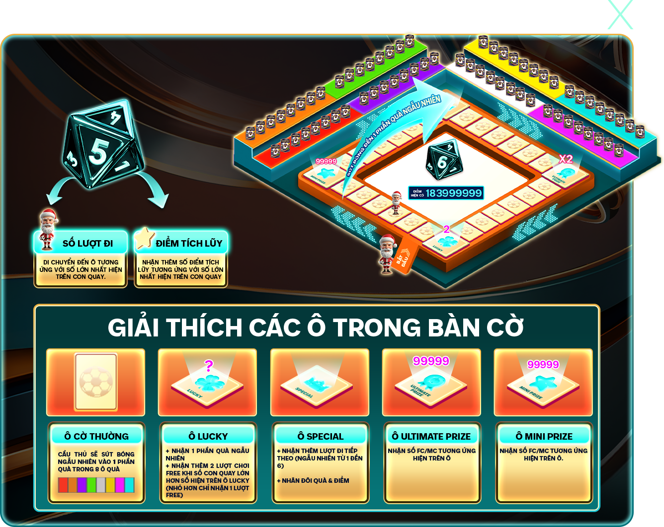 - Ô Ultimate Prize: Khi di chuyển vào ô, các HLV sẽ được nhận FC/MC tương ứng với số hiện trên ô