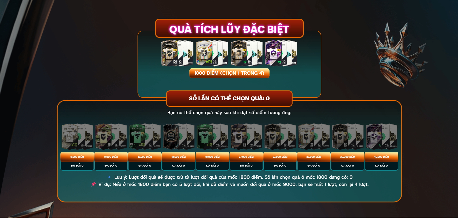 | SỐ ĐIỂM TÍCH LŨY | QUÀ NHẬN ĐƯỢC | LƯU Ý |