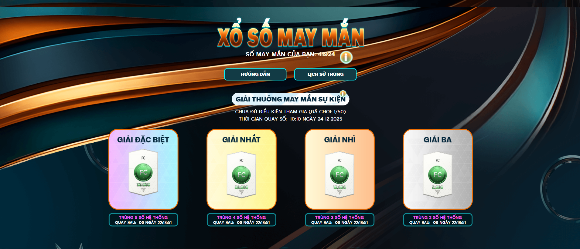 - Ô Lucky: Khi di chuyển vào ô, các HLV sẽ được nhận 1 phần quà ngẫu nhiên & nhận thêm 2 lượt chơi FREE khi con số quay (trước khi vào ô Lucky) lớn hơn số hiện trong ô Lucky (nếu nhỏ hơn chỉ nhận được 1 lượt chơi FREE)
