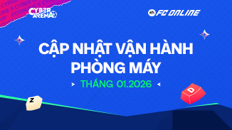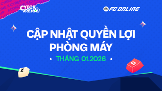 Từ tháng 01/2026, dự án CYBER ARENA sẽ triển khai các quyền lợi mới dành cho phòng máy đối tác FC Online. Khám phá ngay!
