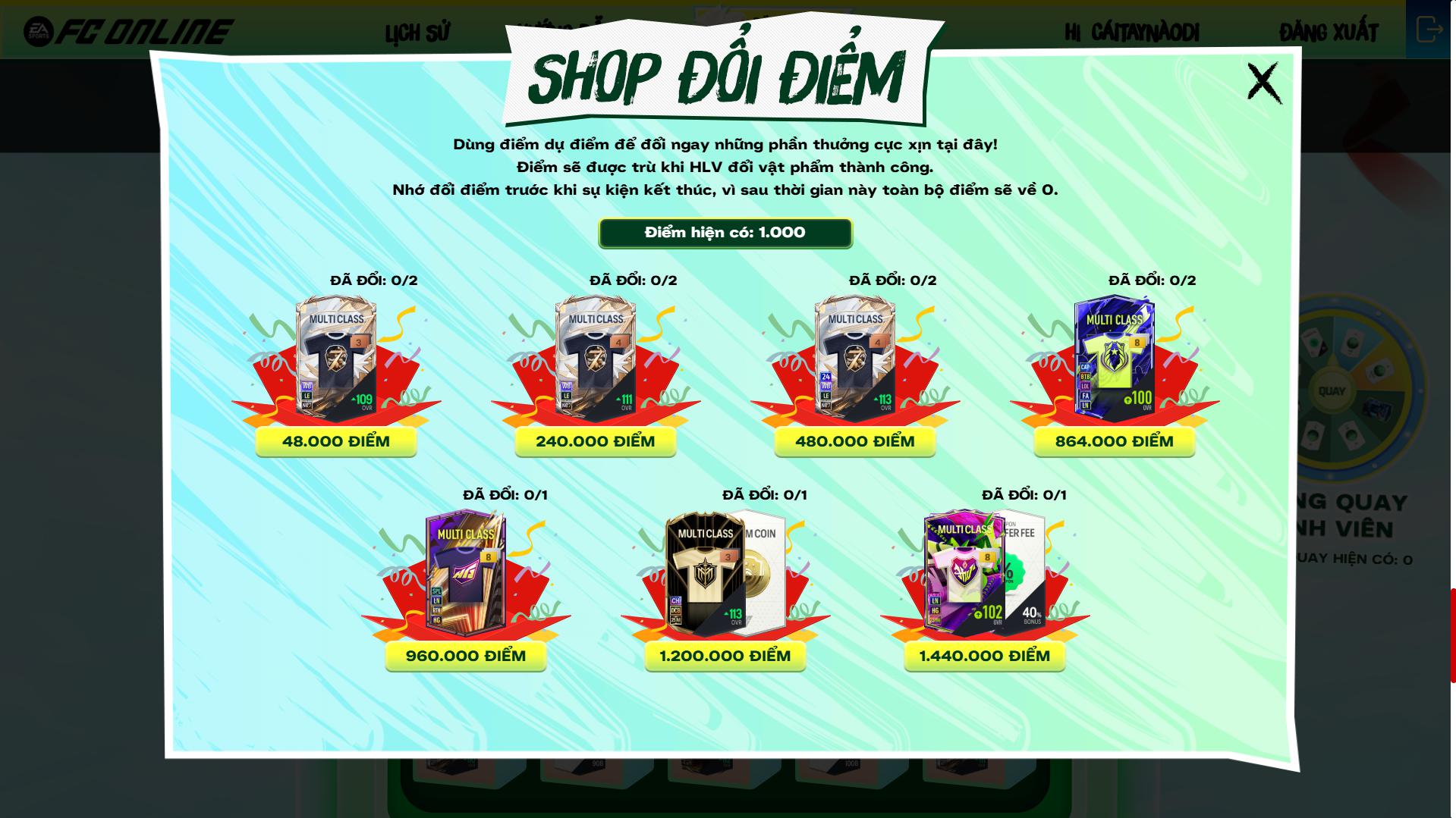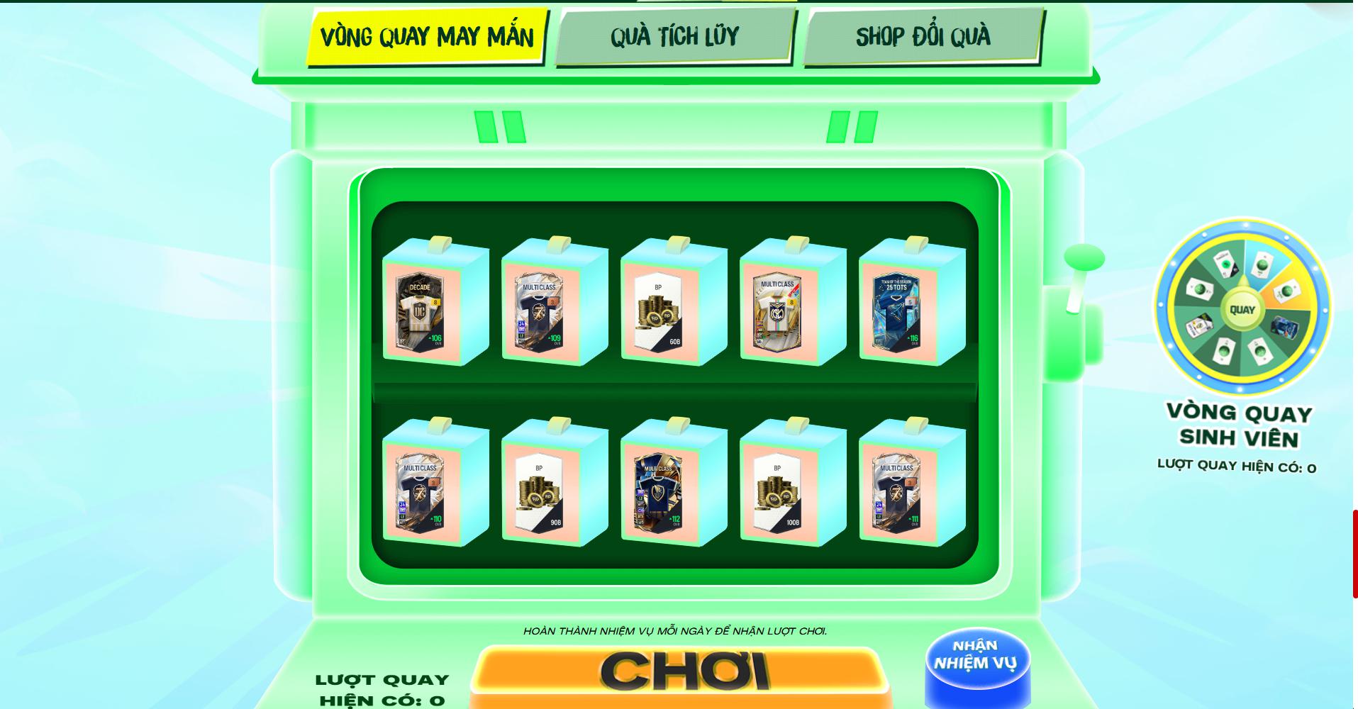 - Đăng nhập FC Online 10 phút: 1 lượt quay