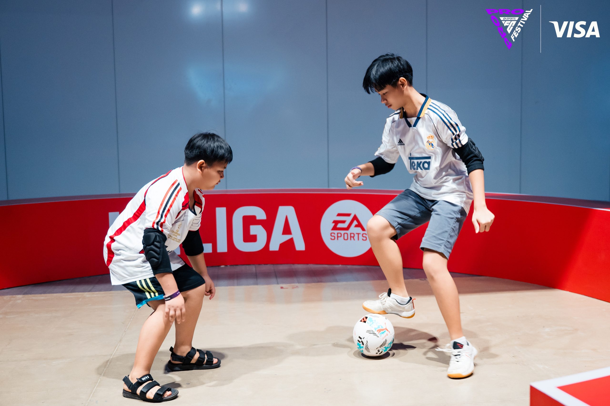 Song song với các trận đấu, khu vực booth trải nghiệm đã mang đến cho khán giả một không gian sôi động và tương tác không ngừng. Người tham dự được trực tiếp chơi game, tham gia mini game nhận quà, check-in cùng những chiếc Cúp vô địch danh giá nhất của bóng đá thế giới – từ Laliga, Serie A, Bundesliga đến Premier League.