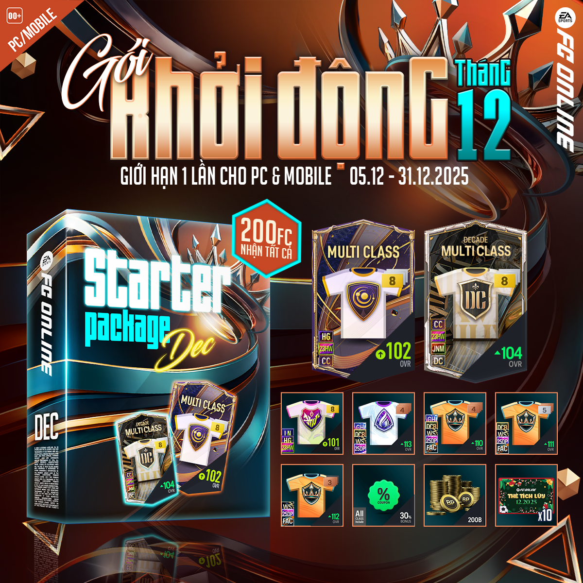 Gói khởi động tháng 12 luôn được nhiều HLV mong chờ khi chỉ cần bỏ ra 200 FC các HLV sẽ có cơ hội sở hữu dàn hào thủ đẳng cấp mùa FAC cùng các siêu phẩm quốc dân mạ vàng.