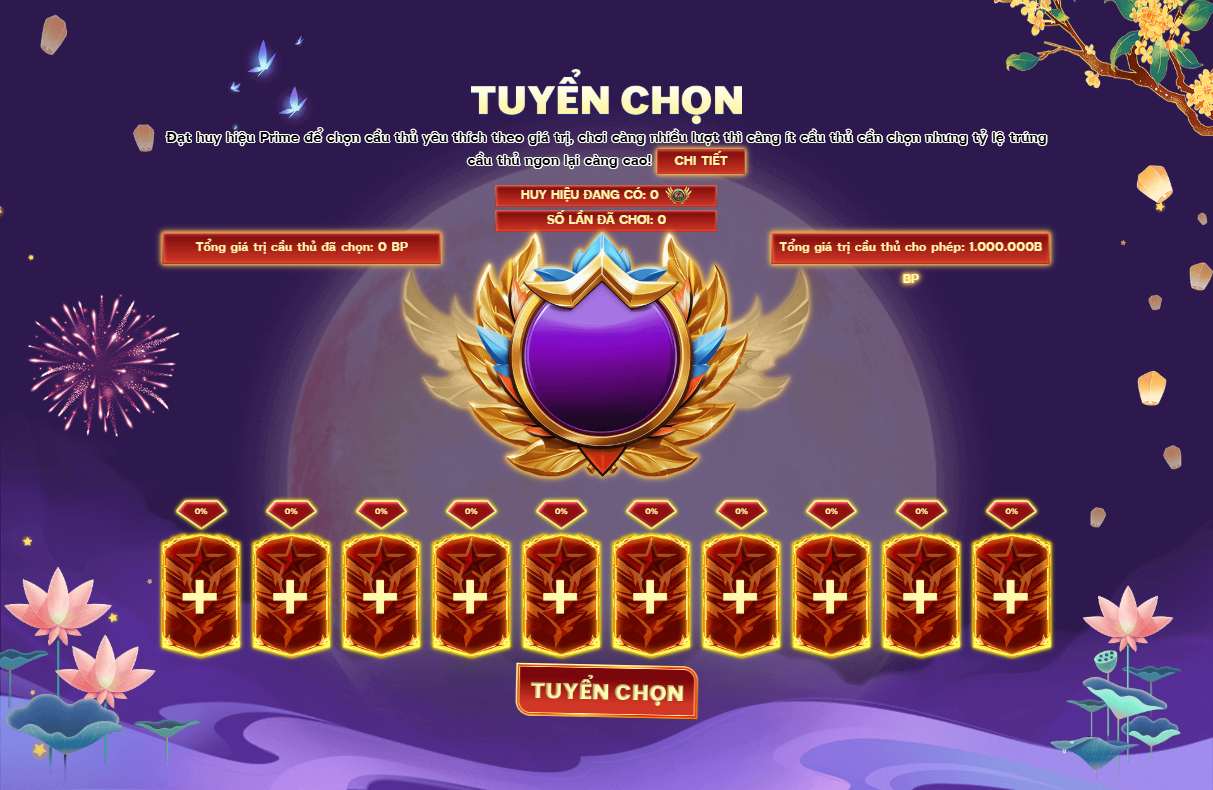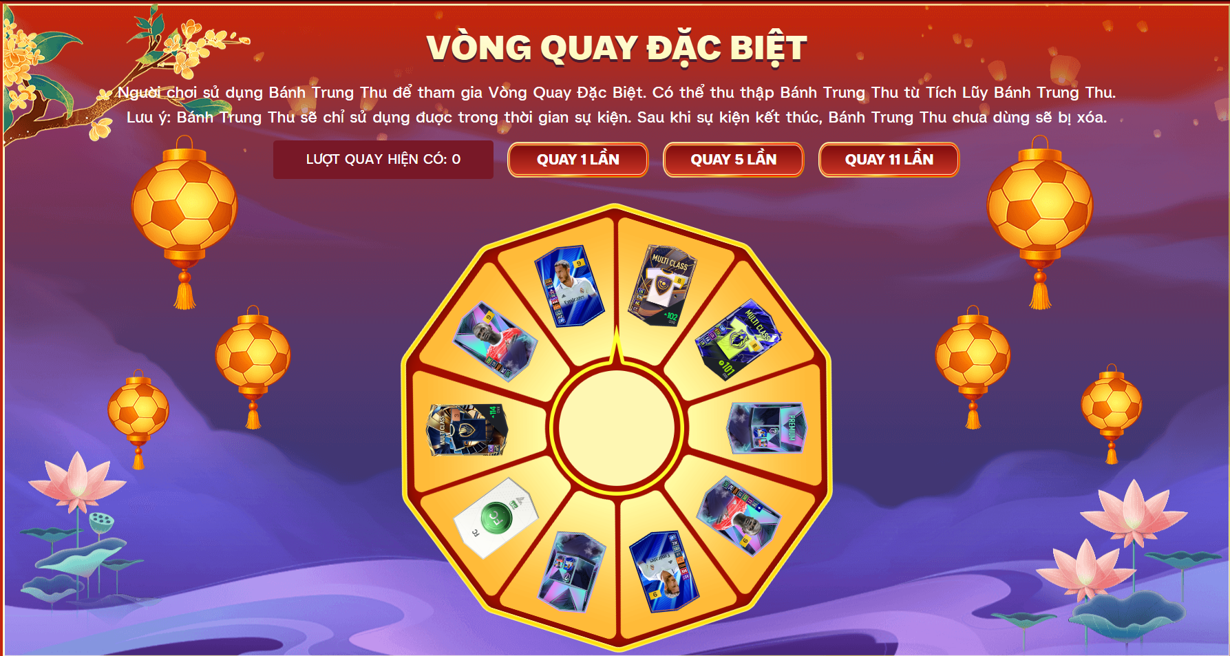 Sử dụng FC/MC hoặc lượt quay miễn phí để xoay Lồng Đèn Siêu Sao. Xoay trúng cạnh nào, HLV sẽ nhận được phần quà ngẫu nhiên từ cạnh đó kèm số điểm tương ứng.