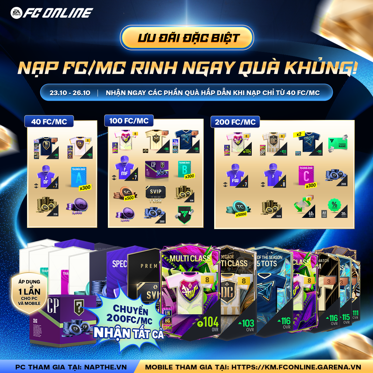 [Nạp Tích Lũy FC/MC 23.10- 26.10]: Săn Ngay Những Mùa Thẻ Mới Cùng Dàn Bom Tấn Quốc Dân Mạ Vàng Cực Hấp Dẫn