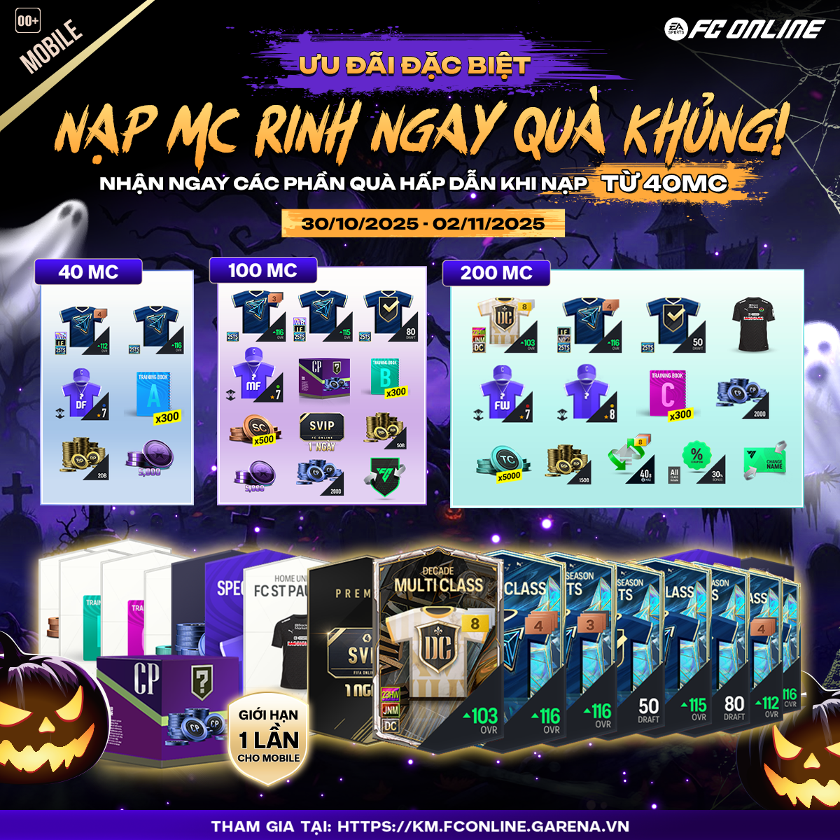 - Đối với các HLV nạp MC để nhận quà vui lòng truy cập vào trang: https://km.fconline.garena.vn/