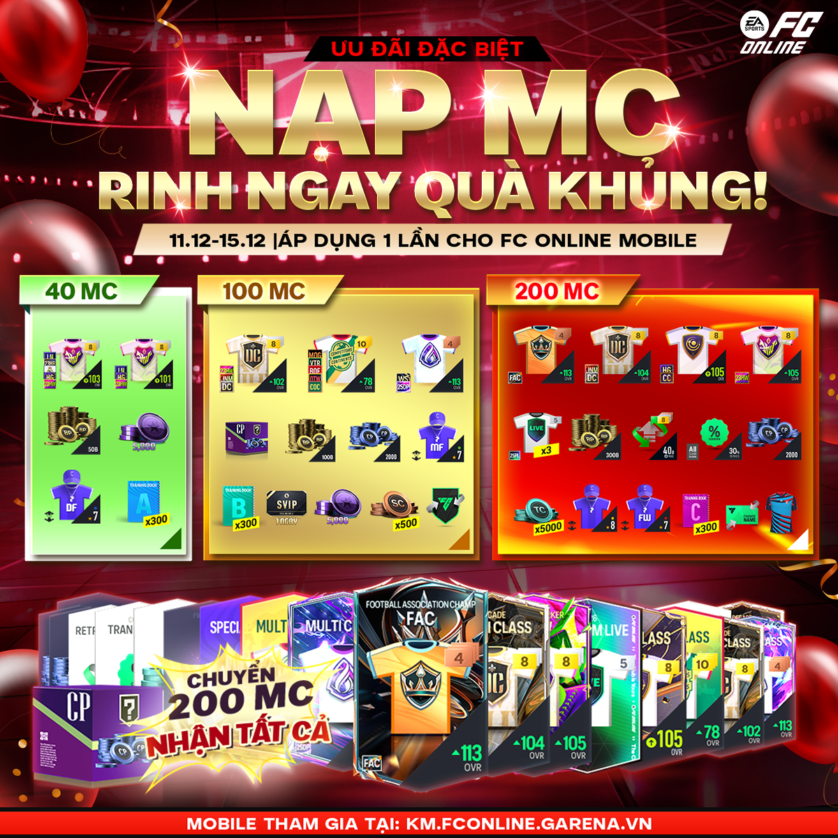 - Đối với các HLV nạp MC để nhận quà vui lòng truy cập vào trang: https://km.fconline.garena.vn/