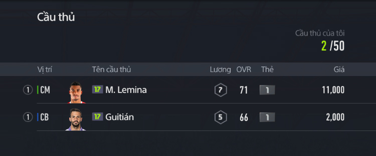 Lưu ý: Ngài không thể bán cầu thủ đang ở trong đội hình chính thức hoặc dự bị.